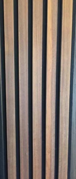 Akupanel måler 2400×600 mm, opbygget af 11 mm dybe og 27 mm bredde lameller, med en lamelafstand på 13 mm. Lamellerne er monteret på den bagvedlæggende akustikfilt. Den specialudviklede akustikfilt er lavet af genbrugsmateriale, og er 9 mm tyk. Panelet er i alt 20 mm tykt