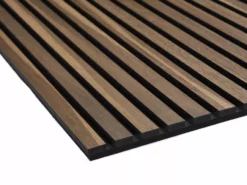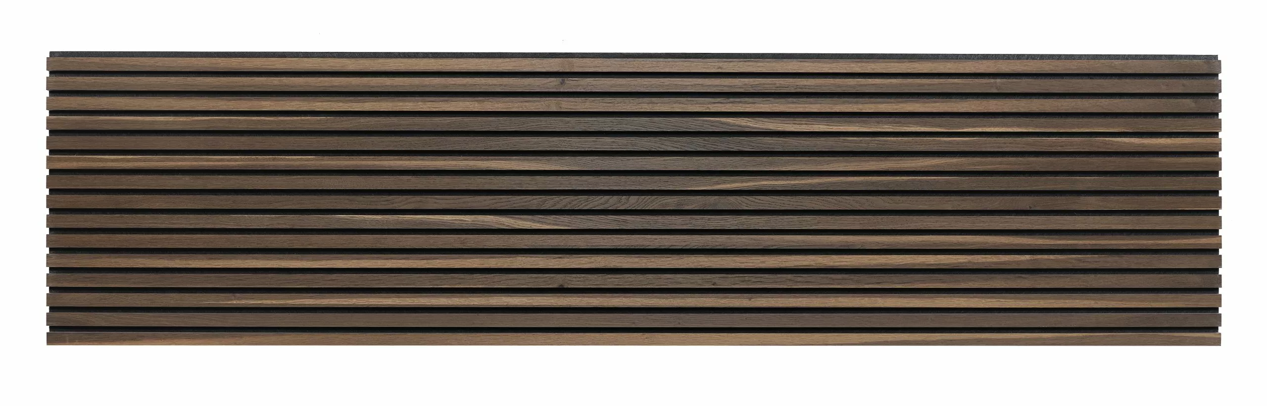 Akupanel måler 2390×600 mm, opbygget af 11 mm dybe og 27 mm bredde lameller, med en lamelafstand på 13 mm. Lamellerne er monteret på den bagvedlæggende akustikfilt. Den specialudviklede akustikfilt er lavet af genbrugsmateriale, og er 9 mm tyk. Panelet er i alt 20 mm tykt