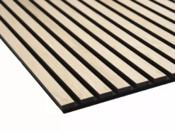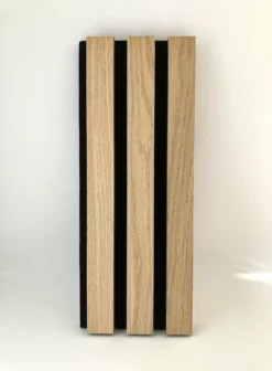 Akupanel måler 2400×600 mm, opbygget af 11 mm dybe og 27 mm bredde lameller, med en lamelafstand på 13 mm. Lamellerne er monteret på den bagvedlæggende akustikfilt. Den specialudviklede akustikfilt er lavet af genbrugsmateriale, og er 9 mm tyk. Panelet er i alt 20 mm tykt