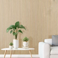 Akupanel måler 2400×600 mm, opbygget af 11 mm dybe og 27 mm bredde lameller, med en lamelafstand på 13 mm. Lamellerne er monteret på den bagvedlæggende akustikfilt. Den specialudviklede akustikfilt er lavet af genbrugsmateriale, og er 9 mm tyk. Panelet er i alt 20 mm tykt