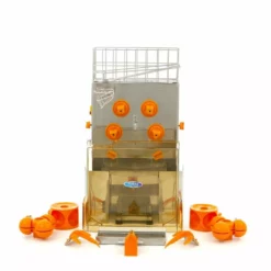 Denne appelsinpresser er en kompakt bord model og gør sit arbejde hurtigt og godt. En stor fordel er den lette rengøring. Appelsinpresseren har en kapacitet på 8 kg. på toppen. Du kan presse omkring 18 til 25 appelsiner per minut.