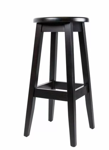 Helt klassis barstol i sort træ med fodhvil hele vejen rundt.