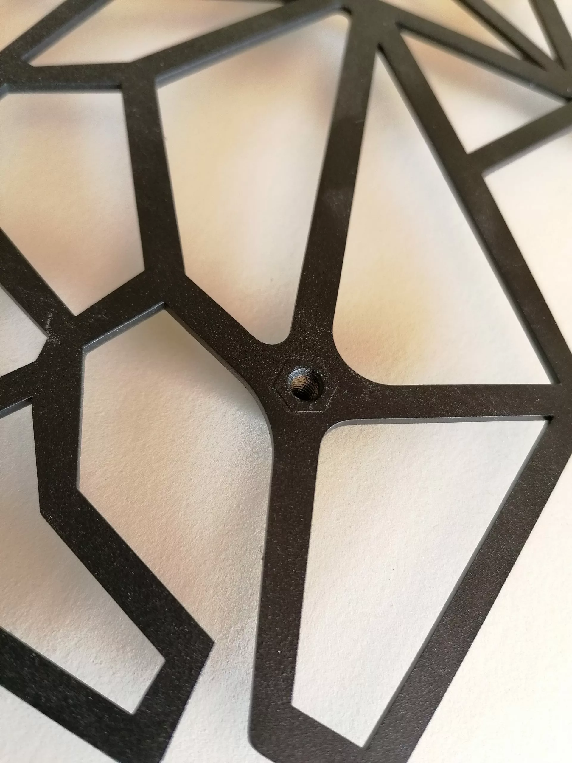 Dette dekorative hoved er lavet i stål og er sort pulverlarkeret.