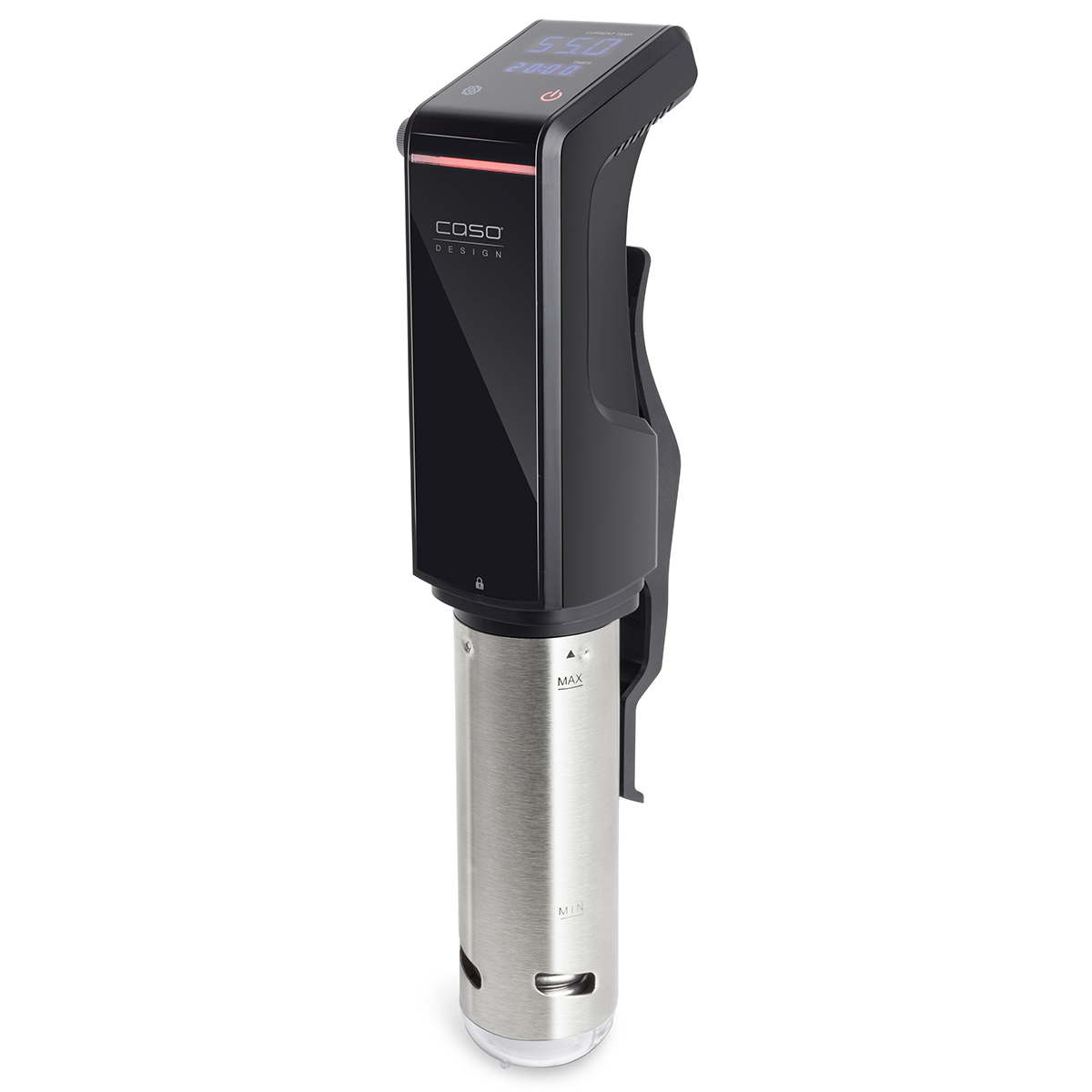 Temperaturen og tilberedningstid indstilles på Touch displayet, same eden rustfri stål drejeknap på siden. Denne stav er en sand TOPmodel fra Tyske CASO.