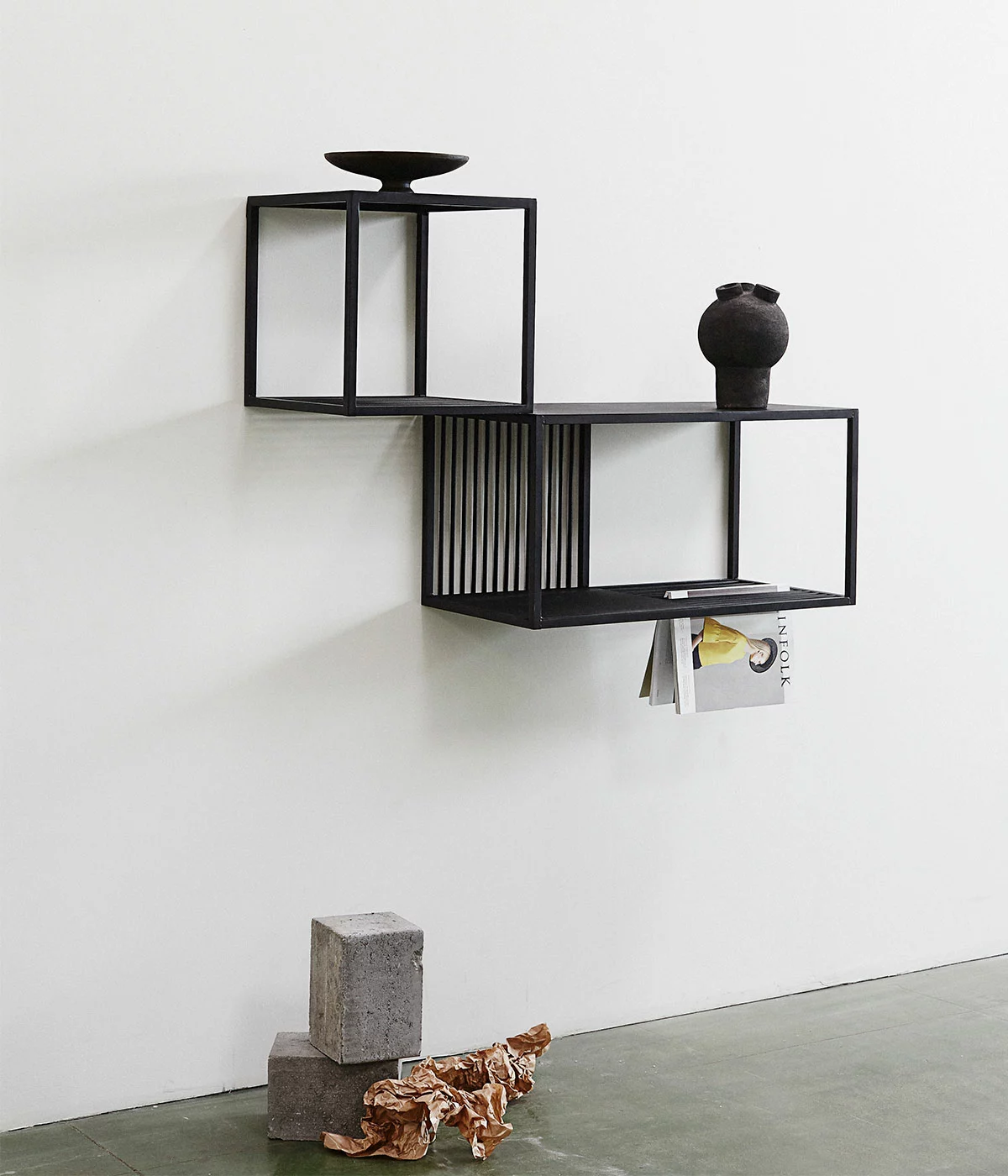 Hylde i pulverlakeret sort jern fra Muubs. Jernstængerne er af massivt jern og resten er hult for at gøre hylden lettere. Denver S kan både bruges som en dekorativ hylde i stuen eller måske som natbord i soveværelset.