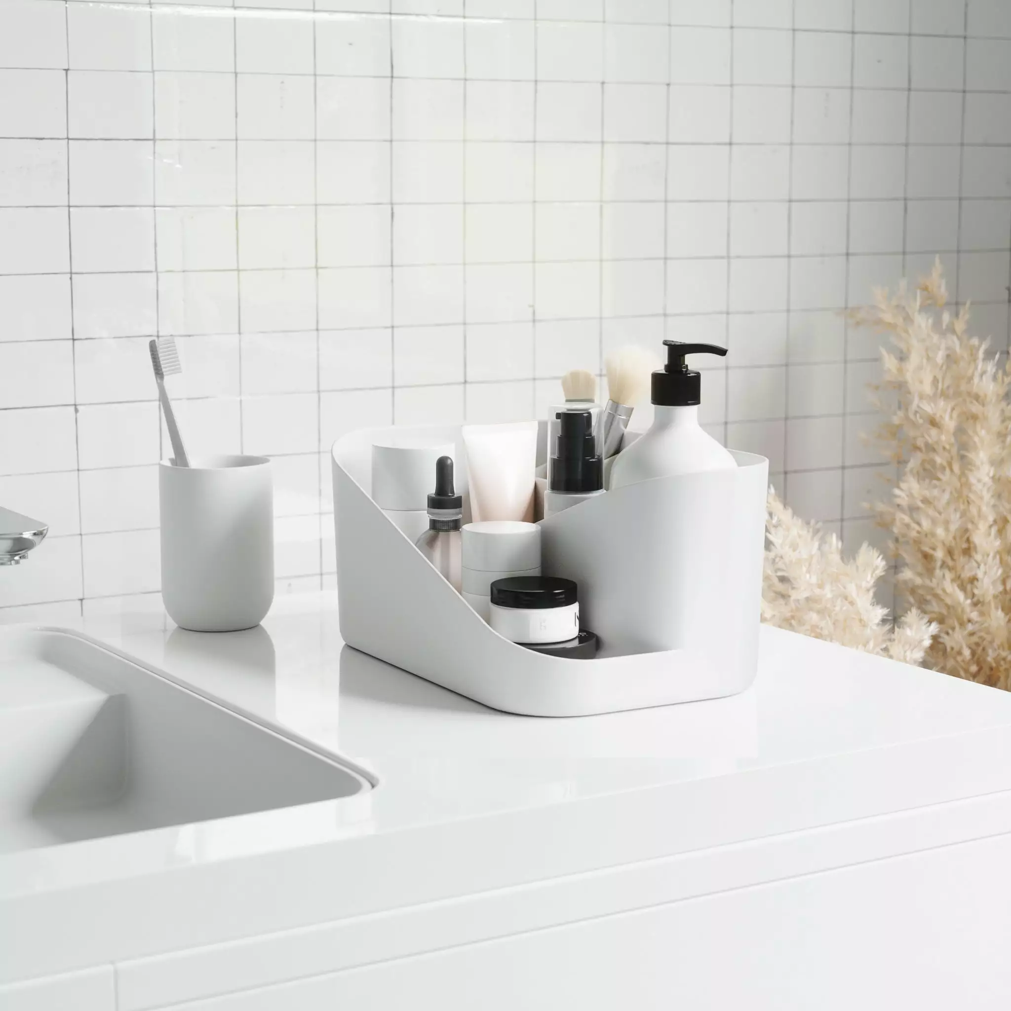 Kassen giver opbevaringsplads til dine kosmetiske produkter og med dens åbne form giver den hurtig adgang til produkterne.