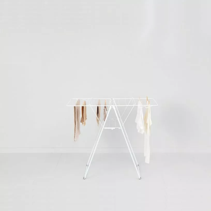 Spar tid og energi ved at tørre dit vasketøj naturligt – og spar plads ved at hænge dem på dette smarte stativ! Med dette Brabantia HangOn Tørrestativ, med 15 meter fleksibelt tørrerum og plads til 4 ekstra bøjler, kan du tørre dine hængebukser eller fladtørre sarte stykker overalt i huset. Og når alt er tørret og færdigt, fold det nemt fladt for kompakt opbevaring. Masser af tørreplads til selv det mindste hjem!
