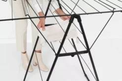 Spar tid og energi ved at tørre dit vasketøj naturligt – og spar plads ved at hænge dem på dette smarte stativ! Med dette Brabantia HangOn Tørrestativ, med 15 meter fleksibelt tørrerum og plads til 4 ekstra bøjler, kan du tørre dine hængebukser eller fladtørre sarte stykker overalt i huset. Og når alt er tørret og færdigt, fold det nemt fladt for kompakt opbevaring. Masser af tørreplads til selv det mindste hjem!