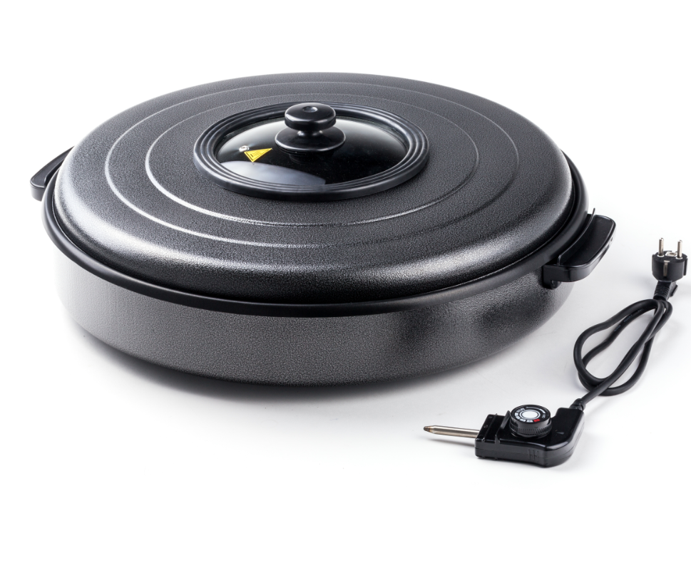 Hendi party pan er en aluminiumspande med non-stick belægning. Derudover medfølger der en flytbar termostat, låg med klart glas og 2 isolerede håndtag. Party panden er egnet til stegning, ristning og til at holde varm. Ø500x(H)190 mm. Størrelse 550 mm: inderpande 550x(H)60 mm, Ø620x(H)190