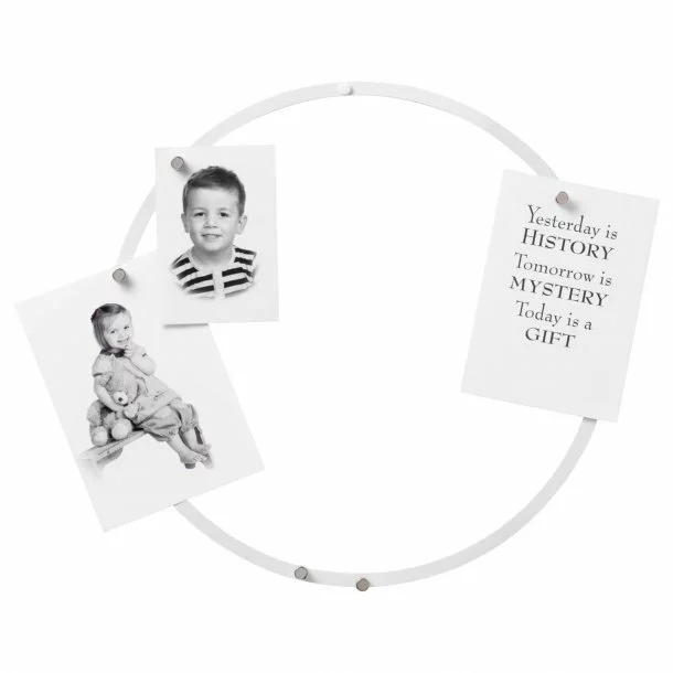 Tavlen er magnetisk og du kan derfor med fordel hænge billeder, postkort eller plantebokse direkte på tavlen, men du kan også bruge den som dekorationsring og pynte den med eksempelvis tørrede blomster.