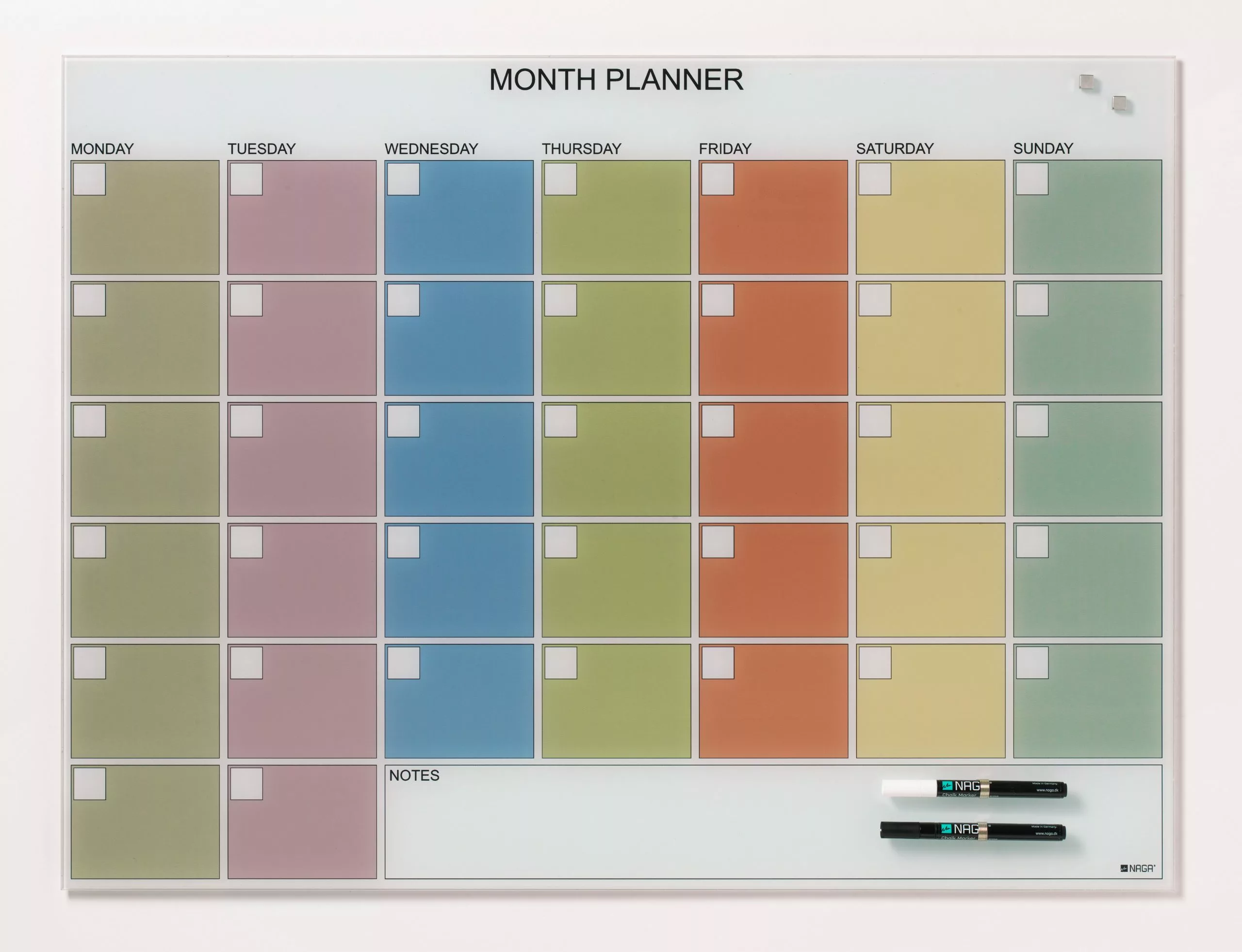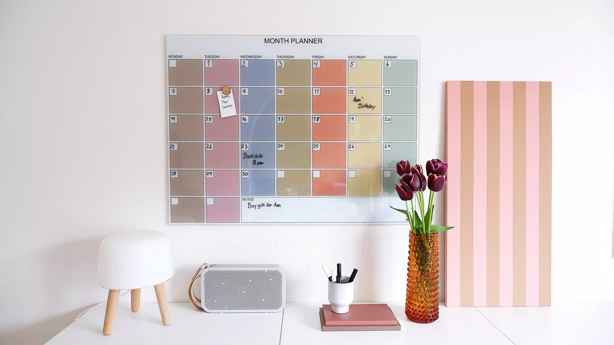 Mangler du det store overblik over månedens begivenheder? Så har du hermed fundet løsningen! Hold styr på aftaler, madplan eller arbejdstider med månedstavlen fra NAGA.