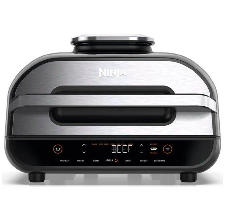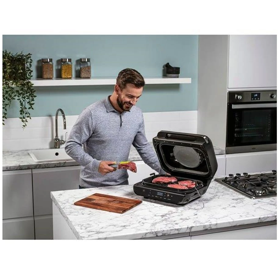 En grill med stor kapacitet, der sikrer perfekte grillresultater. Hvordan kan du bedst lide din bøf? Uanset om det er “Rare” (blodig) eller “Well Done” (well done) – med Ninja Foodi MAX – grill & varmluftfriture i én – skal du kun vælge det ønskede tilberedningsniveau, og enheden gør arbejdet for dig. Nyd saftige bøffer, grillet kylling eller mør fisk efter din smag – med en autentisk røgaroma som på en kulgrill.