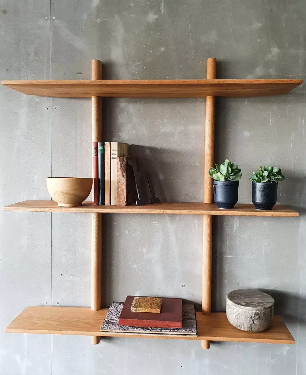 Hyldesystemet består af 3 hylder, som er designet med underfræste kanter, hvilket er med til at give hylderne i egetræ et helt unikt udtryk, som oser af håndværkstraditioner.