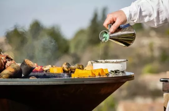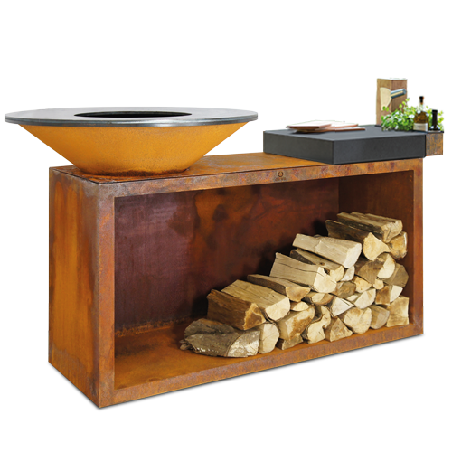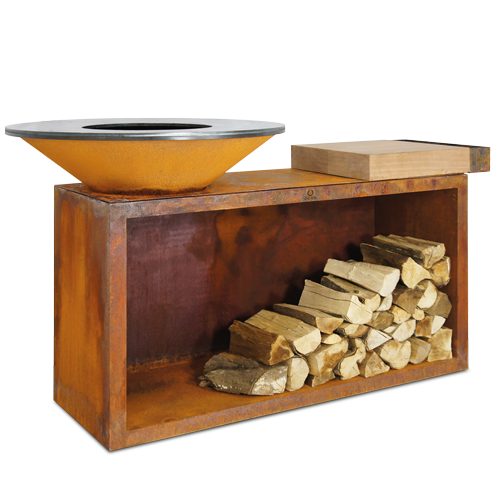 Bålsted i stål med træskærebræt