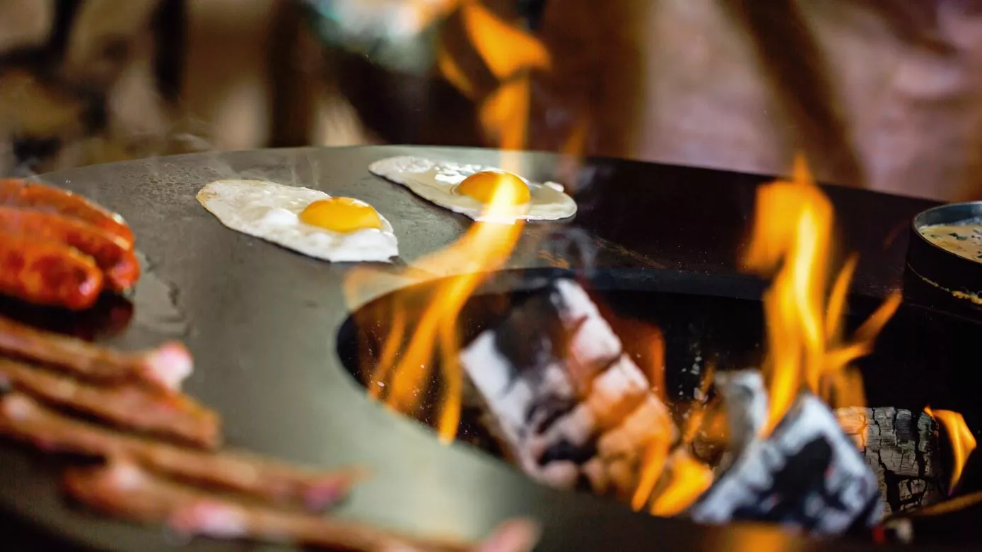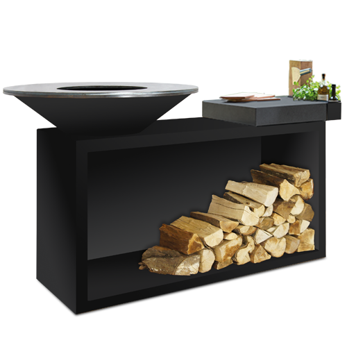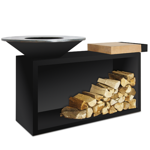 Bålsted i stål med træskærebræt