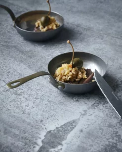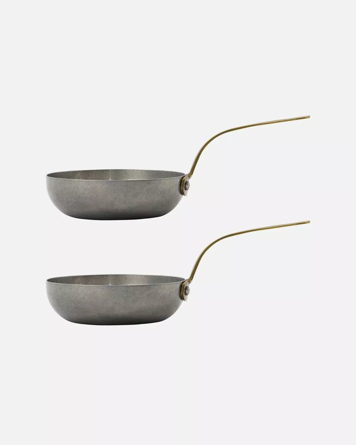 Brug dette sæt med 2 mini-stegepander til at servere omeletter og andre retter ved bordet. De hedder Presentation og præsenterer din madlavning i individuelle portioner. Med det rustfri stål og håndtag i messing tilføjer stegepanderne et uformelt, men alligevel stilfuldt udtryk til din borddækning. Sæt dine retter på bordet direkte fra ovnen og giv dine gæster en mindeværdig oplevelse. Præsentationen betyder noget, og med udvalget af bordservice i miniature fra Nicolas Vahé får dine gæster en spektakulær middag. Maks. temperatur: 250 °C. Velegnet til elektriske ovne og varmluftsovne. Velegnet til elektriske kogeplader og gasblus, men ikke til induktionskogeplader. Skal vaskes op i hånden. Bemærk, at misfarvning kan forekomme over tid, når genstanden udsættes for varme. Dette er almindeligt for rustfrit stål, men har ingen indflydelse på sikkerhed eller ydeevne.