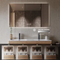 Spejlet tændes og slukkes på afbryderen på væggen som styrer lampeudtaget/stikkontakten du sætter spejlet til.