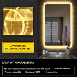 Spejlet tilkobles et lampeudtag eller tilsluttes via stikkontakt. Lyset tændes og slukkes på touchsensoren på spejlet..