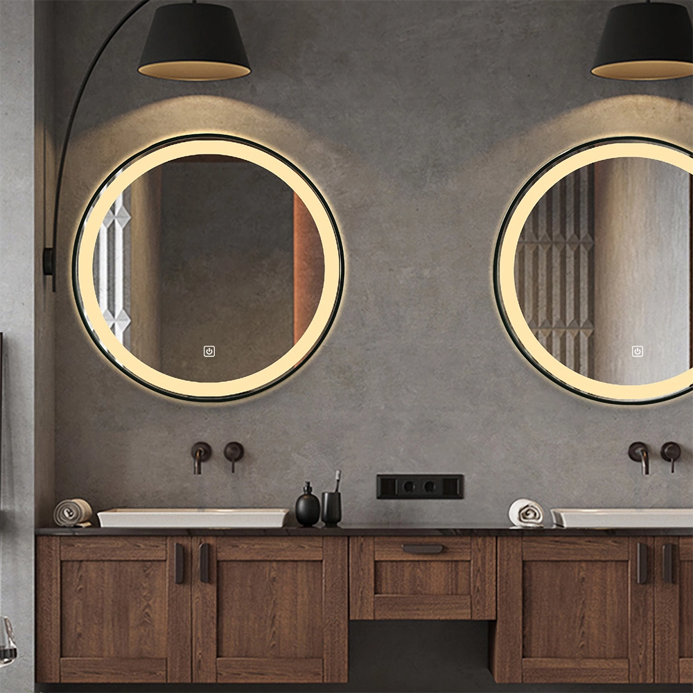 Premium LED Badeværelse Spejl Med Sort Alu Ramme Antidug,Touchsensor (Variant: Størrelse: Ø 70)