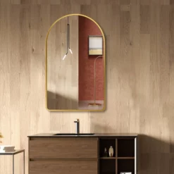 Flot Spejl med 5 mm guld ramme i trælook fra Wallshop’s egen serie af spejle