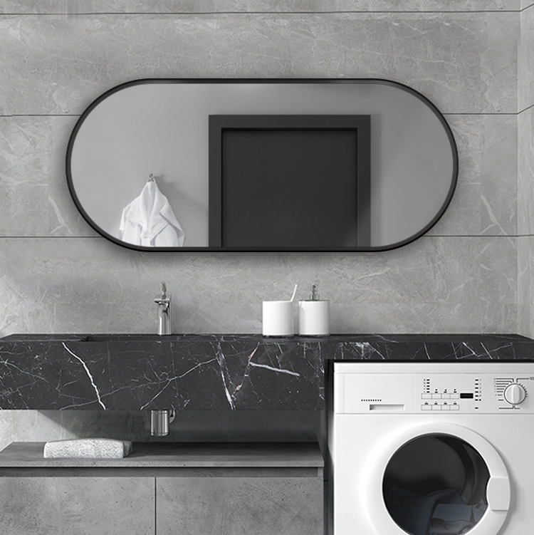 Flot Spejl med 9 mm sort ramme i trælook fra Wallshop’s egen serie af spejle