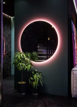 Rundt spejl med LED-baggrundsbelysning er et ideelt tilbud til dem, der værdsætter brugskomfort og moderne design.