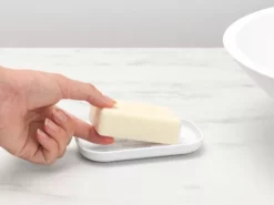 Undgå en sæbeopera, når du vasker dine hænder, og tag fat i denne Brabantia ReNew Sæbeskål. Ribbet for at holde din sæbe tør, og stor nok til at holde en sæbebar i fuld størrelse. Og lad ikke det smarte design narre dig – dens skridsikre base vil holde den solidt på plads i dit badeværelse, toilet eller køkken. Ingen glatte situationer!