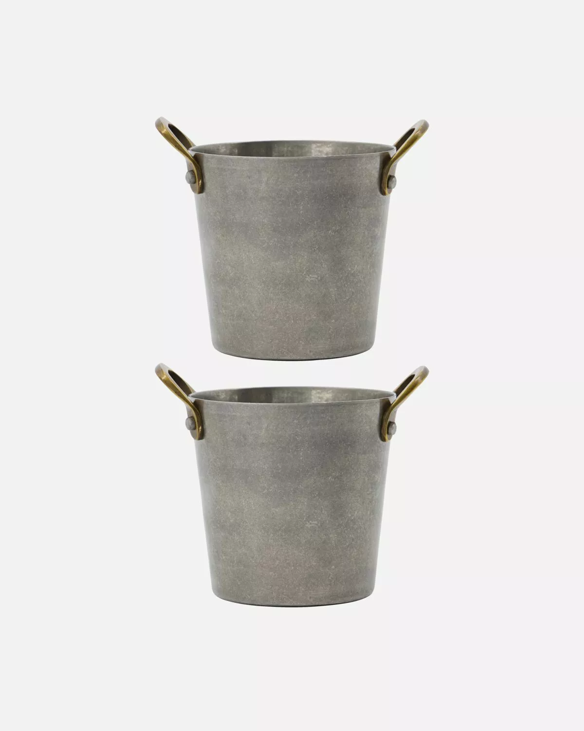 Brug dette sæt med 2 mini-spande til at servere chips, tilbehør eller tapas i individuelle portioner. De hedder Presentation og giver din borddækning en pubagtig stemning takket være det rustfri stål og messinghåndtagene. Sæt dine retter på bordet direkte fra ovnen og giv dine gæster en fantastisk oplevelse. Præsentationen betyder noget, og med udvalget af bordservice i miniature fra Nicolas Vahé får dine gæster en middag med fokus på både smag og den rette atmosfære. Maks. temperatur: 250 °C. Velegnet til elektriske ovne og varmluftsovne. Velegnet til elektriske kogeplader og gasblus, men ikke til induktionskogeplader. Skal vaskes op i hånden. Bemærk, at misfarvning kan forekomme over tid, når genstanden udsættes for varme. Dette er almindeligt for rustfrit stål, men har ingen indflydelse på sikkerhed eller ydeevne.