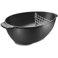 Gryden har er i enden udstyret med en mindre rist af rustfrit stål, som gør det enkelt at tippe gryden for at adskille saucen samt at holde på skaldyrene. Den sorte gryde fra Staub er udført i støbejern. Støbejernet sikrer en optimal fordeling af varme under tilberedning af den lækre ret.