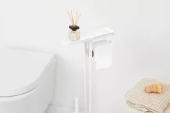 Øjeblikkelig assistance og øjeblikkelig stil til dit mindste værelse: denne Brabantia MindSet Toilet Butler bringer alt hvad du behøver. Han holder gerne din telefon, holder rullen ved hånden og toiletbørsten også. Diskret, hjælpsom og flot, et absolut must-leje.