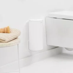 Oprethold dine stilstandarder selv i det mindste rum i dit hus med denne minimalistiske Brabantia MindSet Toiletrulle Dispenser. Holder gerne 2 ekstra toiletruller. Dens lukkede krop beskytter rullerne mod støv og stænk – meget hygiejnisk og meget diskret. Tid til at skifte ruller? Opdrag en med det smarte løftesystem. Stilfuldt, rent og smart.