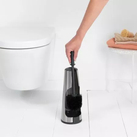 Bevæbnet med denne pålidelige Brabantia ReNew Toiletbørste og Holder, er rengøring af toilettet meget nemmere og hurtigere. Bonus: holderen holder din børste ude af syne, men klar, når du har brug for den. Lavet af korrosionsbestandige materialer, holder holderen sin skønhed – selv under fugtige forhold. Designet til at være diskret!