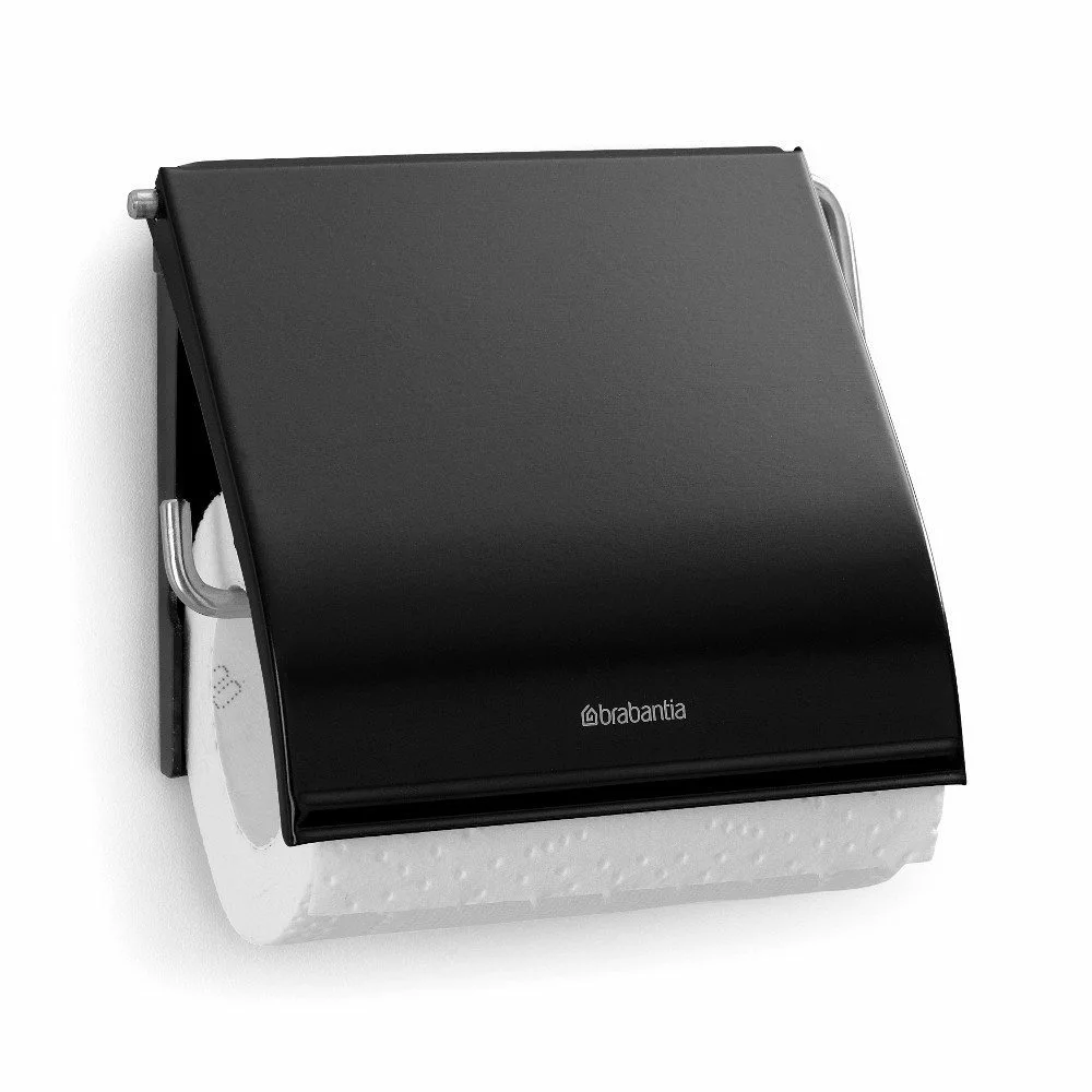 Toriletrulleholder fra Brabantia i mat sort rustfri materiale. Holderen matcher Brabantia toiletbørste og pedalspand.