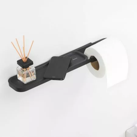 Forkæl dig selv, få fat i denne Brabantia MindSet toiletrulleholder med hylde! Dette design essentielt holder toiletrullen, men tilføjer øjeblikkeligt en lille hylde til din telefon eller andre genstande. Stort hurra for denne sanitetsassistent!