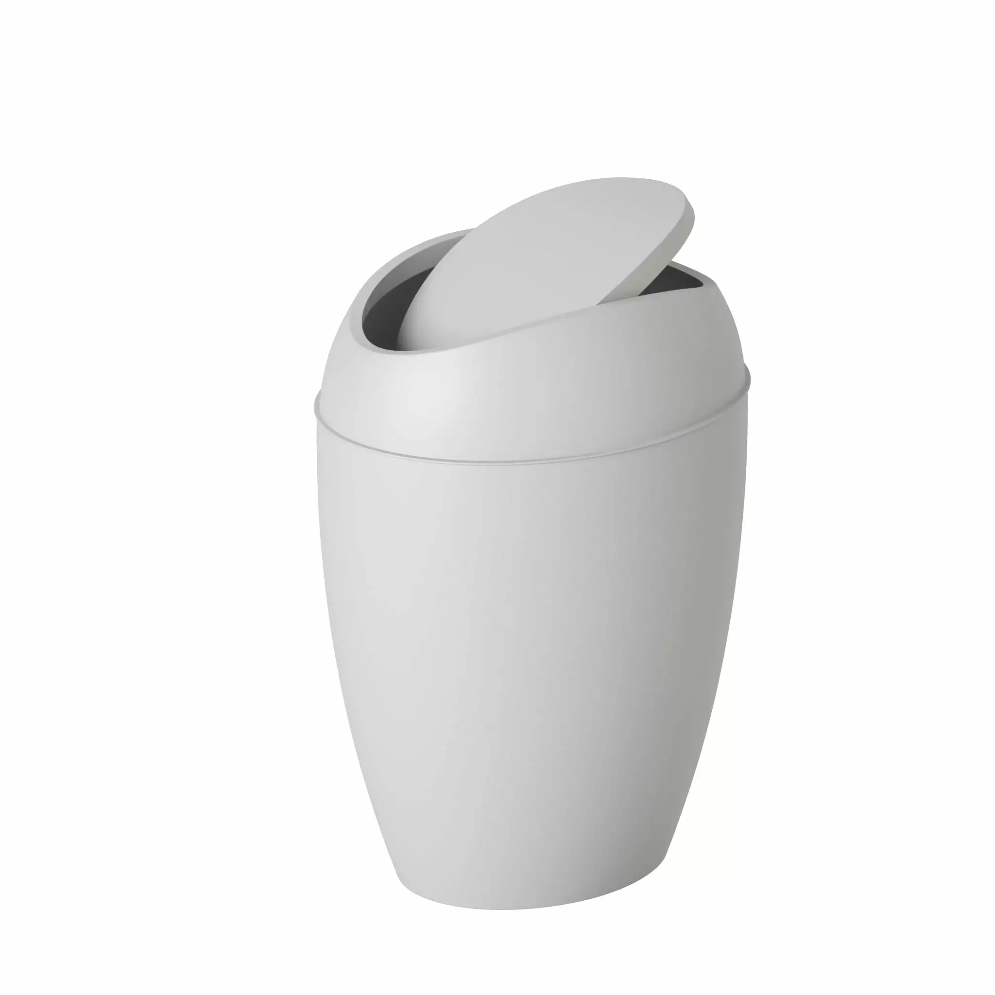 Skraldespanden har et svingende låg som både skjuler skrald og giver den et moderne look i rummet.