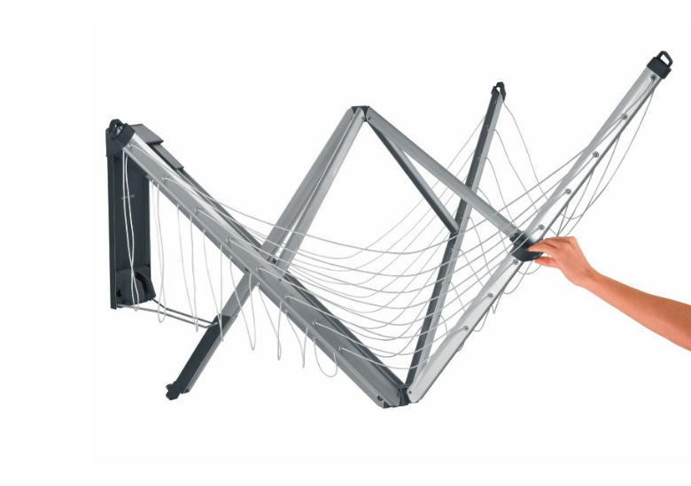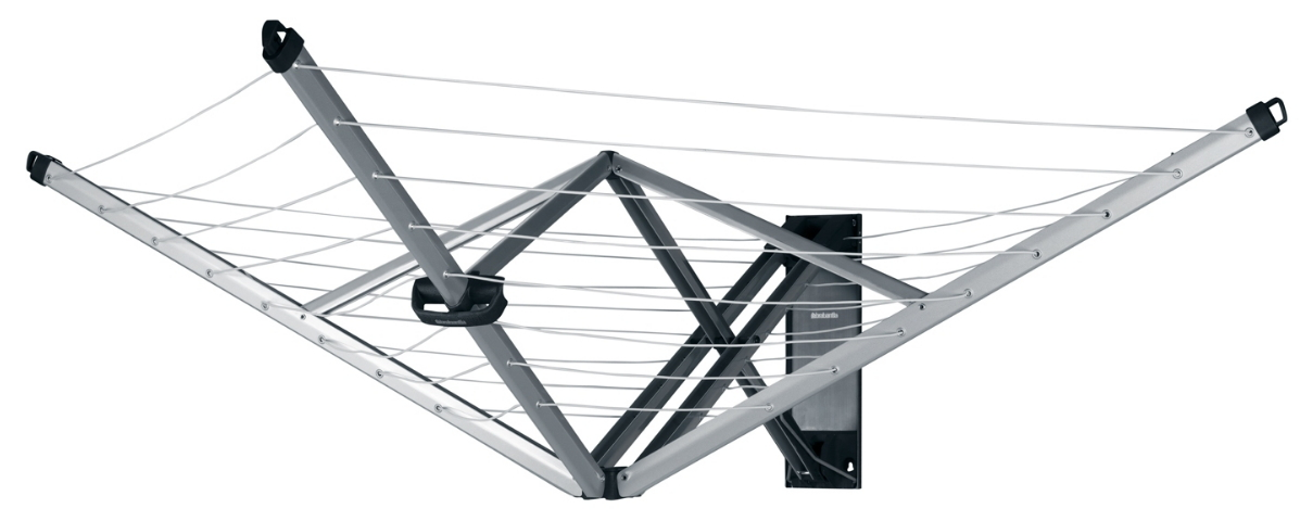 Brabantias vægophængte tørrestativ Wallfix er perfekt til at tørre tøj udendøres. statives monteres på bygningen ydrevæg, og trækkes hurtigt og nemt ud, når det skal i brug.