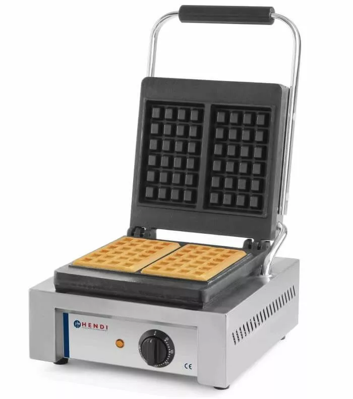 Højkvalitets vaffeljern til professionelle belgiske vafler. Formen er fremstillet i støbejern og kabinet i rustfrit stål. Gaffel til håndtering af vafler er inkluderet. Plads til 2 vafler ad gangen.