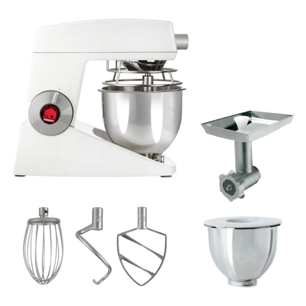 Teddy er meget støjsvag køkkenmaskine, som er designet med henblik på både høj kvalitet og sikkerhed. Denne Teddy køkkenmaskine har et kraftudtag, hvilket betyder, at der kan monteres eksternt